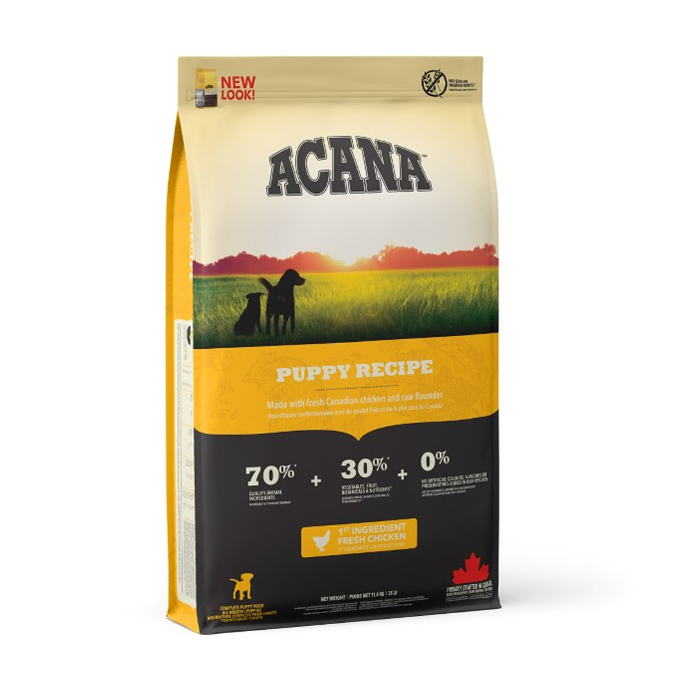 When it comes to ACANA food for dogs, they’re obsessed with every ingredient that goes into their premium recipes made in Canada. That’s why our Puppy Recipe is thoughtfully crafted with ingredients that help nurture your large breed puppy’s growth and development. Made with 70% quality animal ingredients like fresh chicken and raw hake balanced with 30% fruit and vegetables, like fresh whole pumpkin, greens, apples and pears, this recipe provides the nutrition and animal protein your large breed dog needs to live their best life. These wholesome ingredients are provided by suppliers they know and trust, and their vets and pet nutrition experts carefully craft each recipe with the goal of making your pet feel so good inside, you’ll see it on the outside.