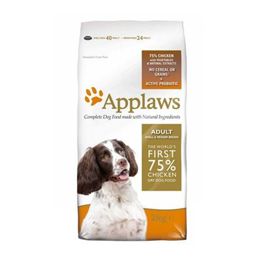 Applaws is a complete, dry dog food specially formulated for the health and wellbeing of small and medium breed adult dogs. Grain free Applaws is made with 75% protein-rich chicken, so it's low in carbohydrate. This can encourage the development of lean muscle tissue, promoting a healthy weight for your dog.