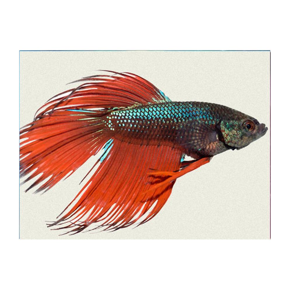 The Assorted Crown Male Fighter, also known as a Crown Tail Betta, is a stunning freshwater fish admired for its dramatic fin rays and vibrant colours. Each male displays unique patterns and shades, making them a true showpiece for aquariums.