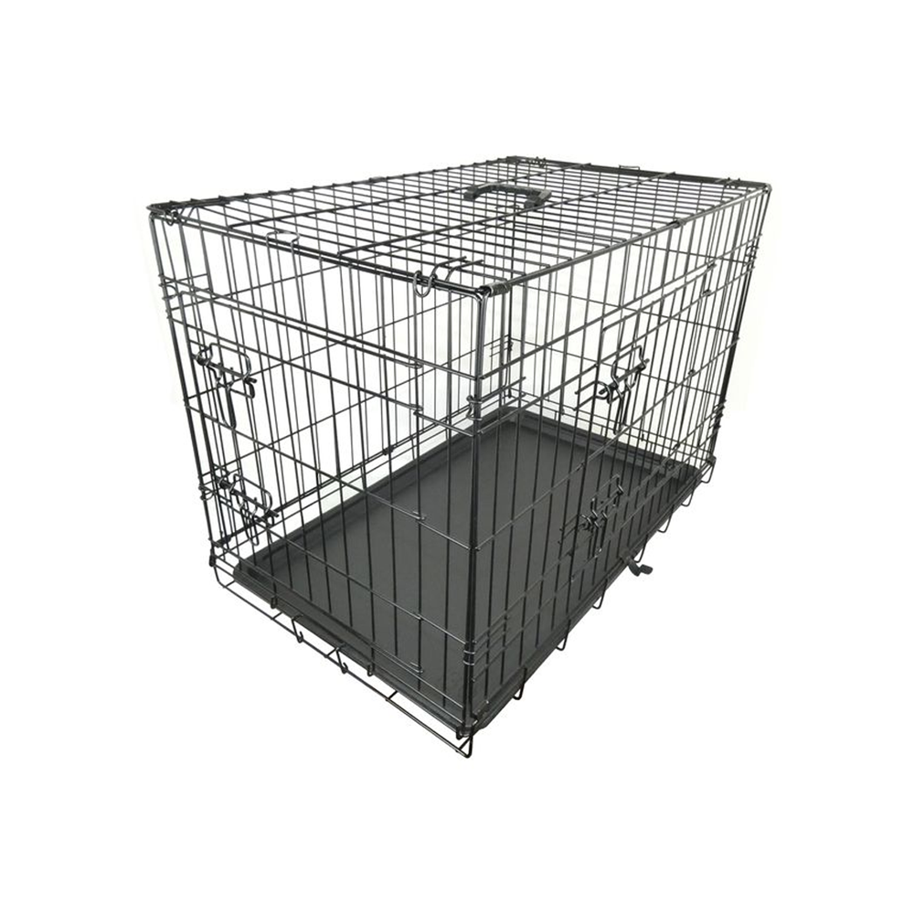 Featuring double doors for easy access, secure latches, and a removable plastic tray for hassle-free cleaning, it’s ideal for crate training, travel, or giving your dog a quiet place to rest.