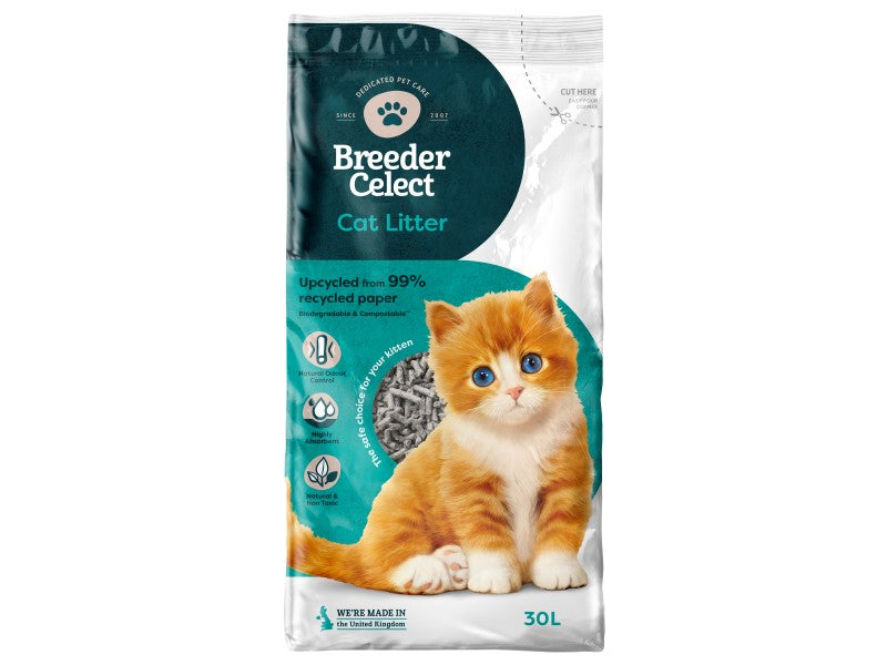 Breeder Celect is a revolutionary paper-based cat litter that is not only highly effective but also kind to the planet. Made from 99% recycled paper and with no added chemicals, this litter is a safe and sustainable choice for both your cat and the environment.