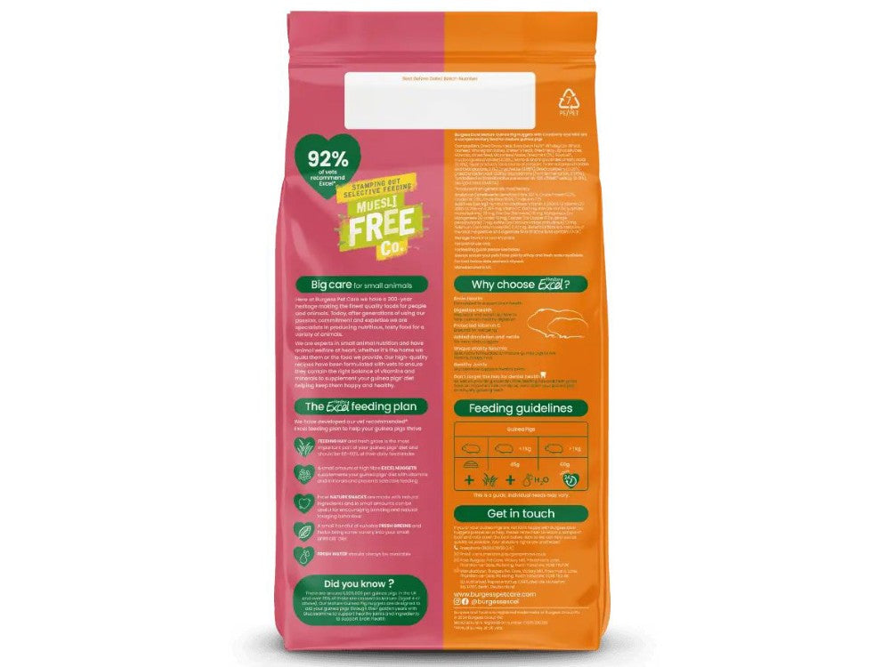 Our delicious, high fibre Mature Guinea Pig Excel Nuggets with Cranberry & Mint supplement your aged 4+ guinea pigs’ diet with vitamins and minerals and prevent selective feeding.