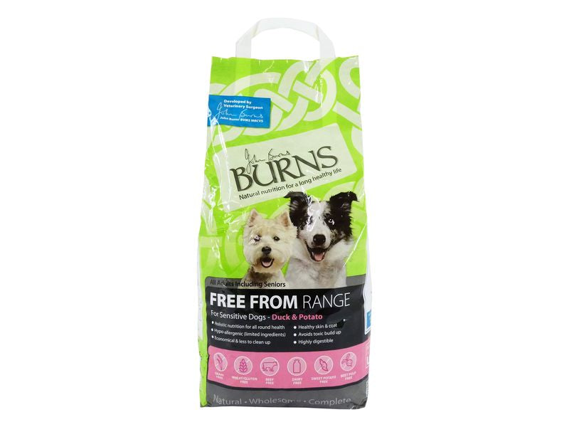 Burns Grain Free Duck & Potato Adult and Senior Dog Food which contains high-quality natural ingredients and is designed for pets to thrive. This grain-free diet has been carefully crafted in response to market demand and is developed by Veterinary Surgeon, John Burns.