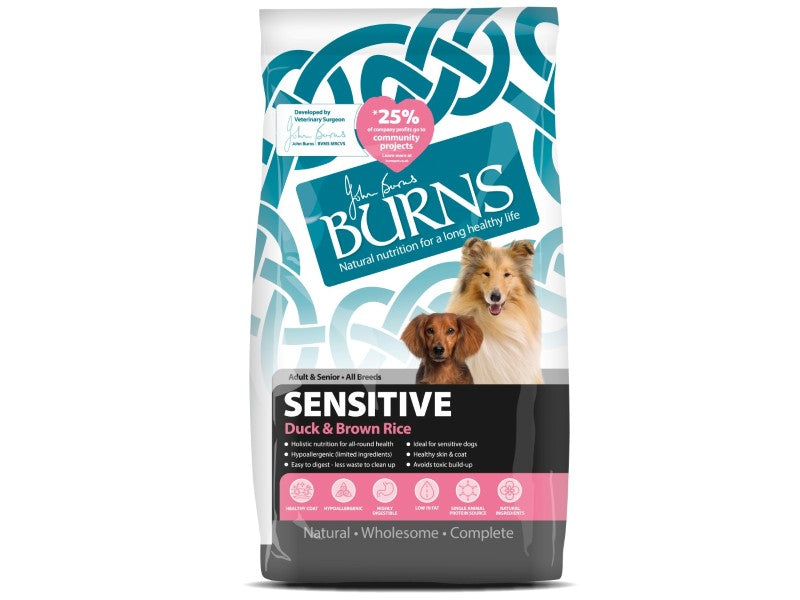 Provide gentle, delicious relief for your dog's sensitive digestion with Burns Sensitive Duck & Rice Dry Dog Food. This specially formulated, hypoallergenic complete dry food is designed to be highly digestible and exceptionally kind to even the most delicate stomachs, helping to alleviate symptoms like upset tummies, itchy skin, and food intolerances, all right here in Carrickfergus and across the UK.