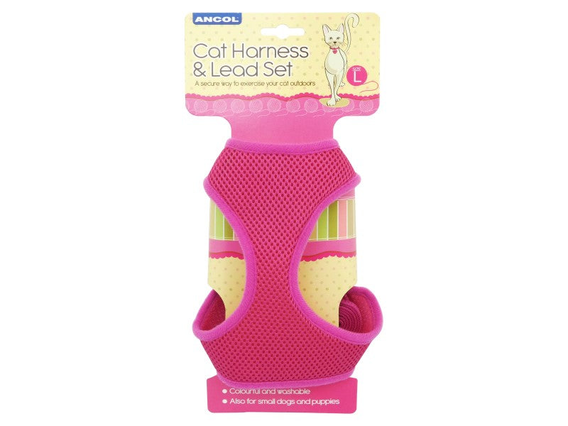 cat harness & lead set pink large