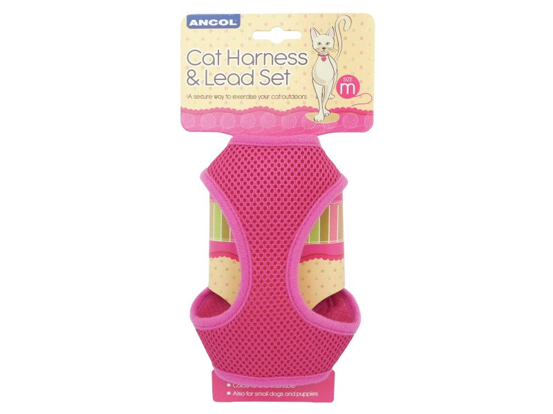 CAT HARNESS & LEAD SET PINK MEDIUM