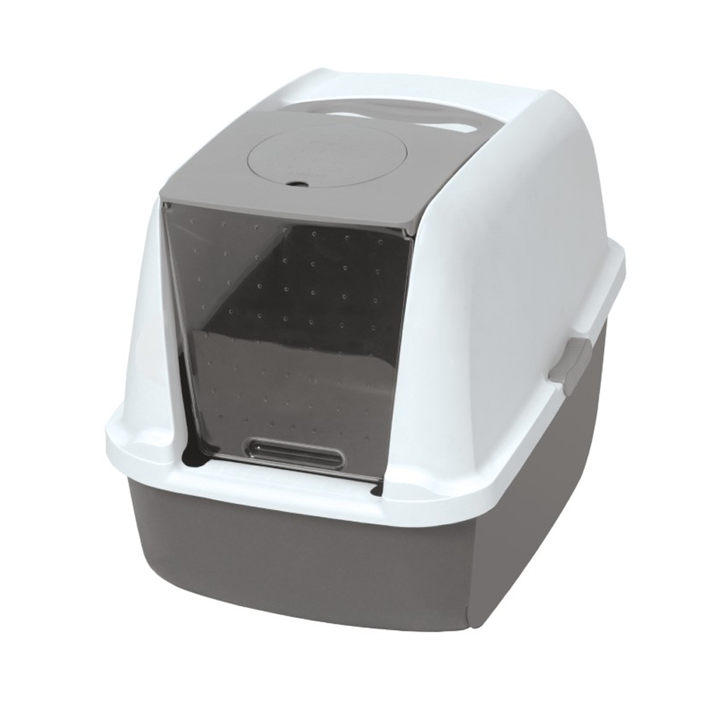 The Catit Airsift Litter Box is a modern, hooded litter solution designed to simplify your life and provide your cat with a clean, private, and odor-free space. This sleek grey and white litter box is engineered from top to bottom for easy litter management and superior odor control.