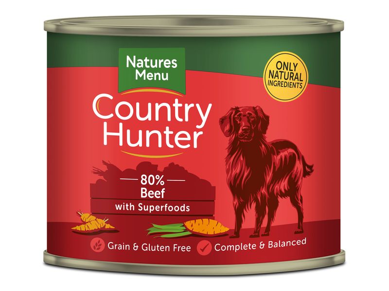 Natures Menu Country Hunter Tins are packed with high-quality, natural ingredients and responsibly sourced meat, gently cooked to lock in nutrition. Made with 80% real meat or fish, blended with wholesome fruits, veggies, and superfoods, each grain-free recipe supports healthy digestion, strong muscles, and overall vitality.