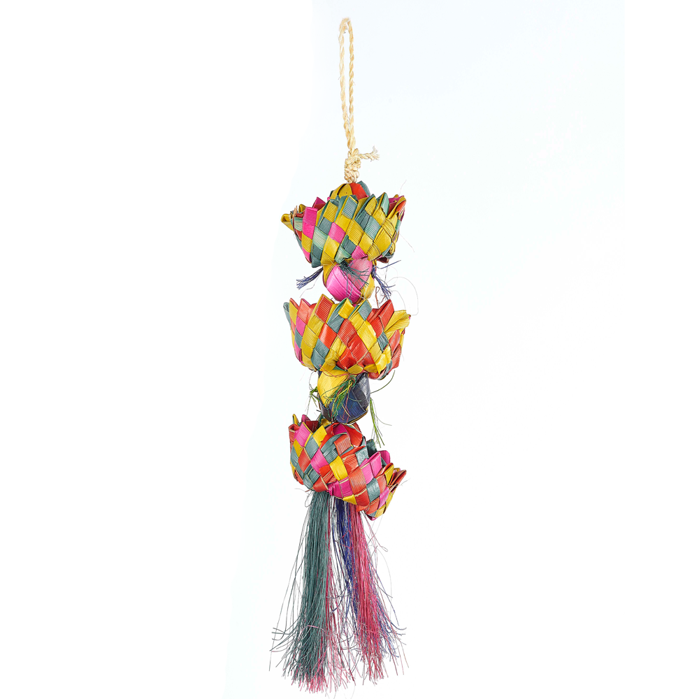 Hanging pinata toy suitable for small parrots.