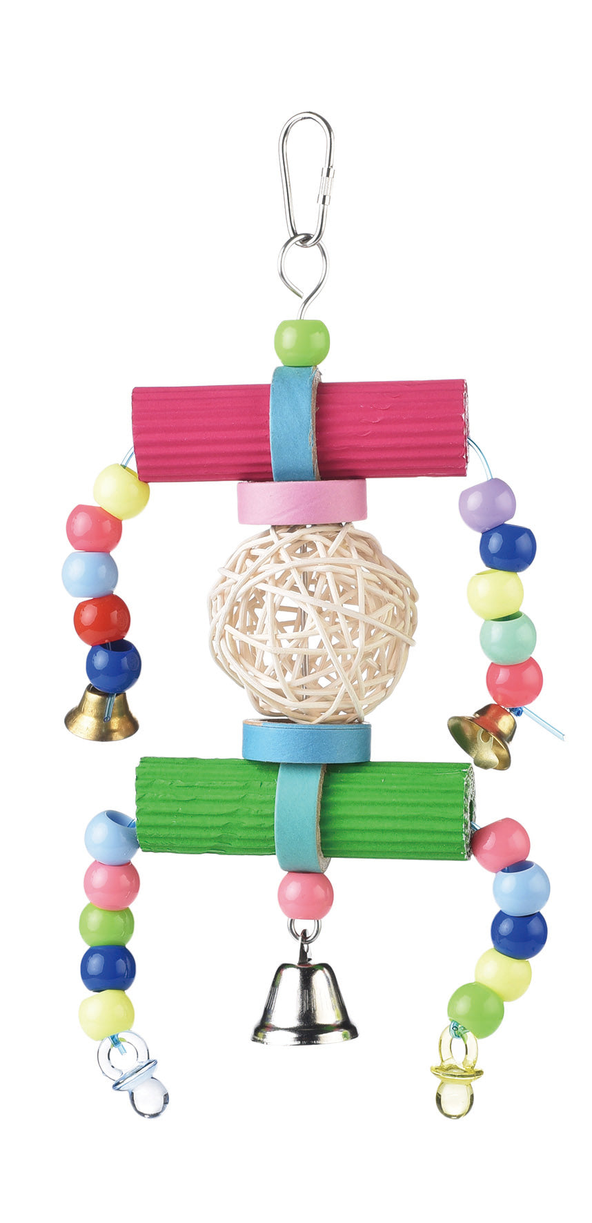 Hanging toy suitable for small parrots.
