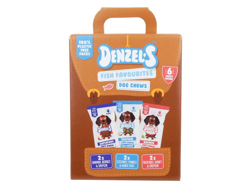 Give your furry friend a taste of the ocean with Denzel's Dog Chew Fish Multi-Pack! This convenient pack contains six 75g bags of delicious and healthy fish chews, perfect for satisfying your dog's natural urge to chew while providing them with essential nutrients.