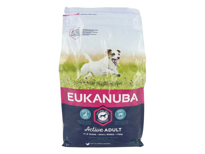 Eukanuba Small-breed for adults is made up of smaller, denser kibble so it's easy to digest but is still full of all the nutrients they need to develop into a healthy adult dog. The feed contains antioxidants such as vitamin E to build a stronger immune system as smaller dogs tend to live longer than larger breeds.