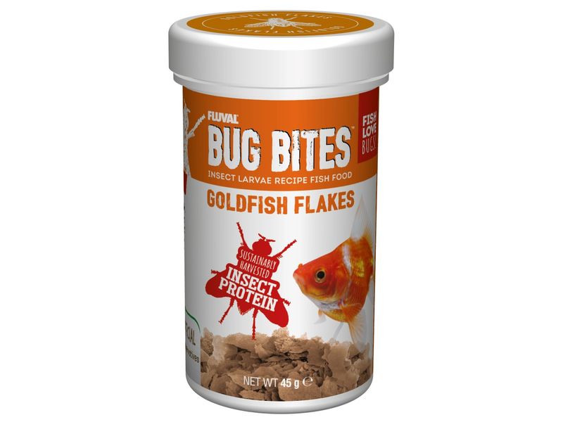 Give your goldfish the nutrition they deserve with Fluval Bug Bites Goldfish Flakes. Made with sustainably sourced black soldier fly larvae as the #1 ingredient, these protein-rich flakes are specially formulated to support healthy growth, vibrant colour, and a strong immune system.