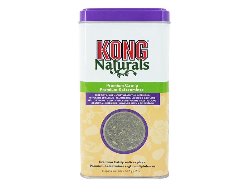 - Irresistible; highly potent KONG Premium North American Catnip available in a convenient resealable tin for lasting freshness