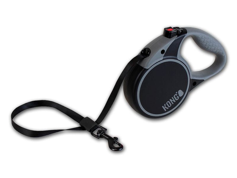 The Kong retractable leads are designed to perform in even the toughest outdoor conditions. Whether on a short walk around the block or a long adventure exploring the outdoors, the durable Kong retractable lead is always the best choice to provide your dog with the maximum freedom while being on a lead. The reflective trim of the webbing provides additional safety during walks in the dark. An ergonomic soft grip handle with added grip support guarantees comfortable handling even on the longest walks. To keep total control on every adventure the lead has a specially designed intuitive one hand brake and lock mechanism. Medium suitable for dogs up to 30Kg