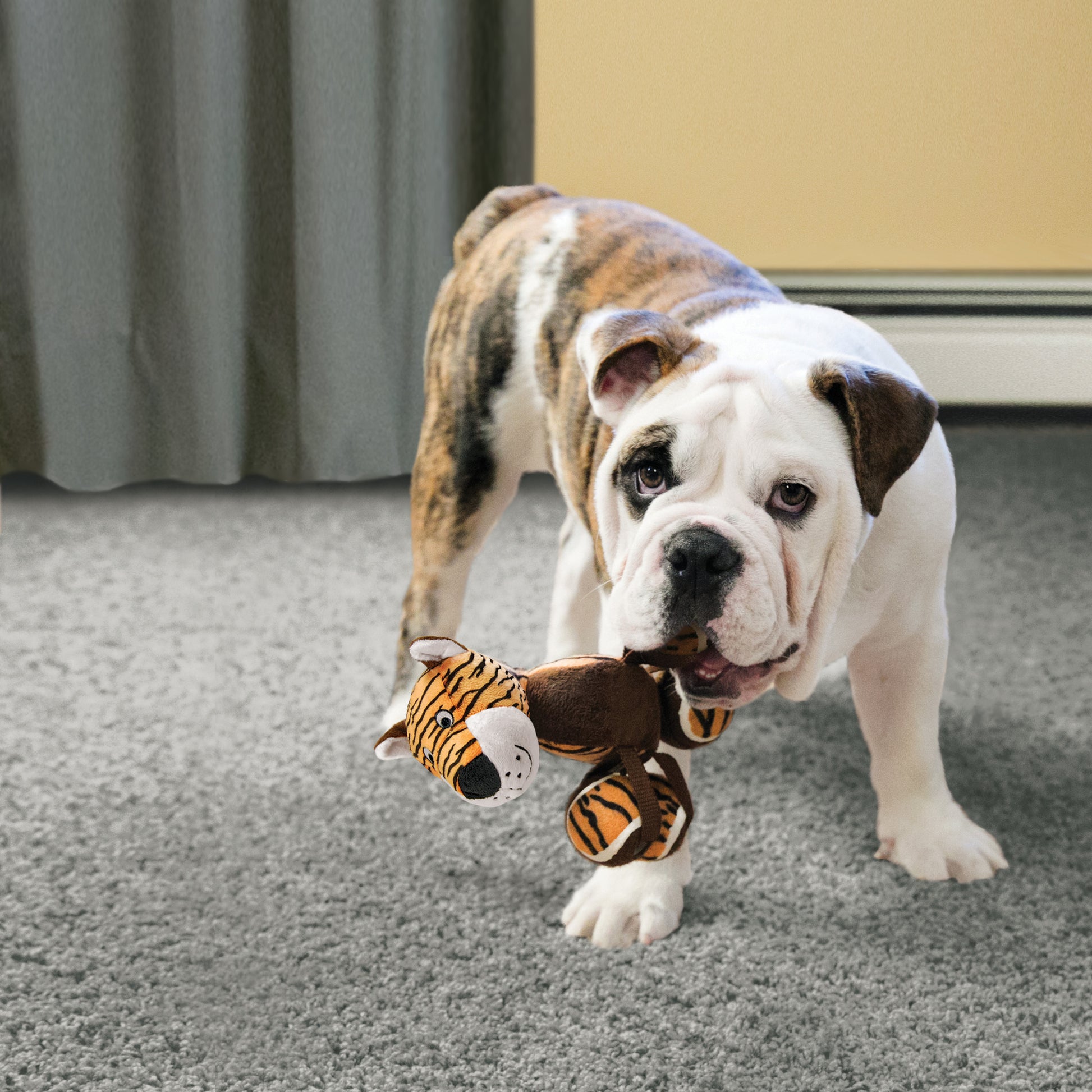 KONG TenniShoes reward dogs with multiple tennis ball options and extended play sessions. The four dangling tennis ball legs create unpredictable movement that encourage dogs to instinctually thrash, twist or shake the toy while squeakers entice play for added fun.