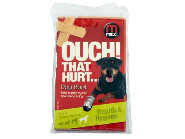 The Mikki Dog Boot helps to promote rapid healing of injured pads and also helps to guard against infection by keeping your dog's injury clean and dry. Made from weather proof material ideal for when taking your pet out and about. Includes a reinforced non-slip sole for extra grip which will help your pet get around easily, even on wet surfaces. This product contains one weatherproof dog boot for temporary protection of an injured paw. It is not intended for prolonged use. It has a bonded vinyl upper with a non slip PVC sole making it ideal for post-operation wear. The sizing allows for your dog to wear a dressing. Select a size down if your dog is not wearing a dressing.
