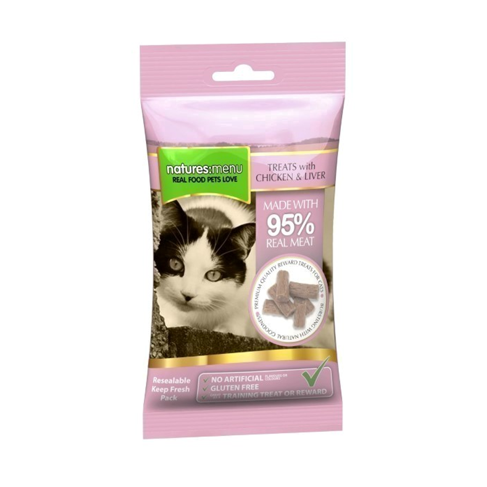 A complementary pet food for cats with no artificial flavours or colours. Chicken and Liver. High meat content training or reward treats and made with high quality Chicken, liver and pork. Ideal for reward training or for concealing medication with a handy re-sealable packs to keep treats fresh. Contains no artificial flavours or colours.