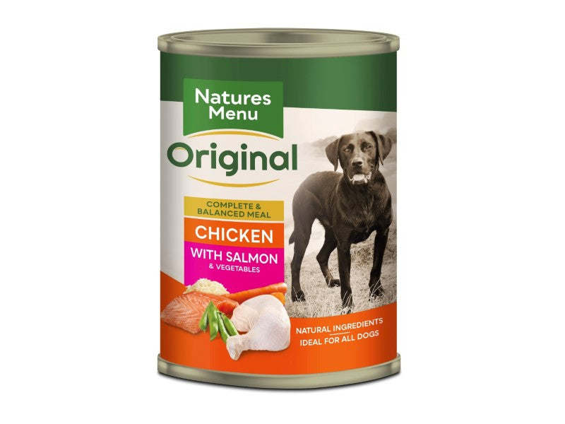 A delicious blend of real chicken and salmon with wholesome vegetables and wholegrain rice. Complete and nutritionally balanced for adult dogs and puppies over 20 weeks of age. Natural goodness in a can.