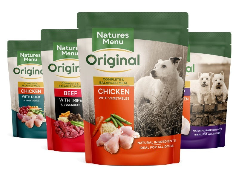 Natures Menu Dog Pouches Multipack wet dog food contains balanced, complete meals made using the finest quality ingredients. Each pouch offers a delicious dish, made with whole cuts of meat and responsibly-sourced human-grade ingredients that make a great alternative to raw feeding.