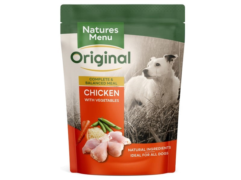 Natures Menu Adult Chicken with Vegetables is prepared from whole cuts of meat, fresh vegetables and rice. Because of the 60% meat content each meal is a more nutritious, digestible meal for your dog. Each pouch is filled with top quality chicken, which is an excellent source of essential amino acids that provide the building blocks for muscle development. Each pouch contains the correct balance of vitamins and minerals to help maintain a healthy active life, without any unwanted extras such as soya, wheat, maize or bran.