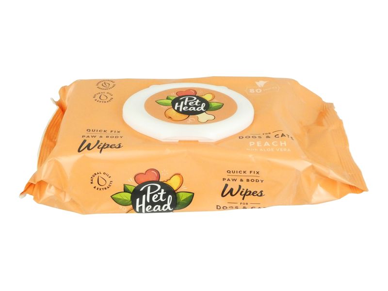 Pet Head Quick Fix Wipes are packed with calendula and aloe vera to leave the coat soft and shiny whilst also using those rich soothing properties from the active ingredients. Pet Head Quick Fix Wipes have an amazing peach fragrence, which is very popular, with fruity and sweet notes.