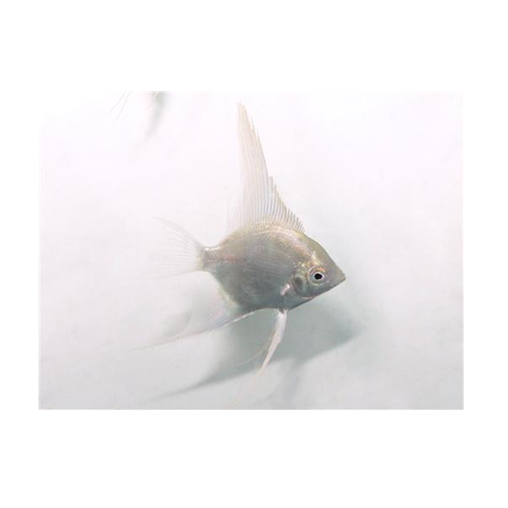 The Platinum Angelfish is a beautiful and highly sought-after variety of freshwater angelfish, celebrated for its stunning, solid white coloration. At a small size, these juveniles are already displaying the pristine, iridescent white that will become even more brilliant as they mature. This selectively bred Pterophyllum scalare is a fantastic choice for aquarists looking for a centerpiece fish with a classic and sophisticated look.