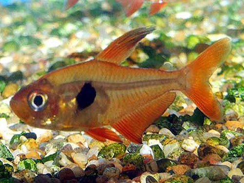 Bring a touch of sophisticated drama and vibrant color to your aquarium with the Red Phantom Tetra M. This medium-sized tetra is a true showstopper, known for its deep, semi-transparent body that glows with a beautiful, rich maroon or brick-red hue. Its most defining feature is the beautiful, semi-transparent red fins and the signature, glowing spot just behind its gill plate, often rimmed with a brilliant white or blue. This subtle detail adds a touch of mystery and elegance, making it a captivating focal point in any tank.