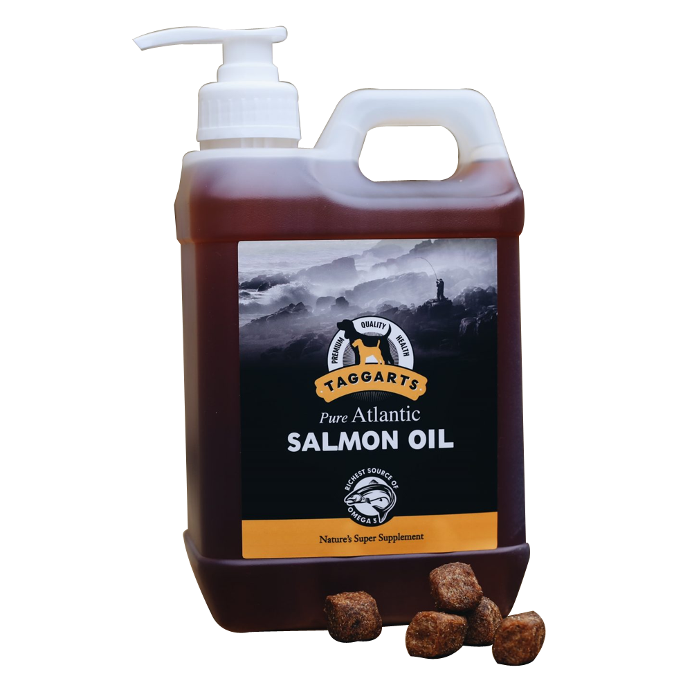 Widely known as a natural super supplement, Taggarts Pure Atlantic Salmon Oil is, “cold pressed,” at source. This unique process allows it to retain the essential long chain Omega 3 (DHA and EPA) and Omega 6 fatty acids. These are vital in supporting all areas of your dogs health. It comes with an easy to use pump dispenser for no mess application.